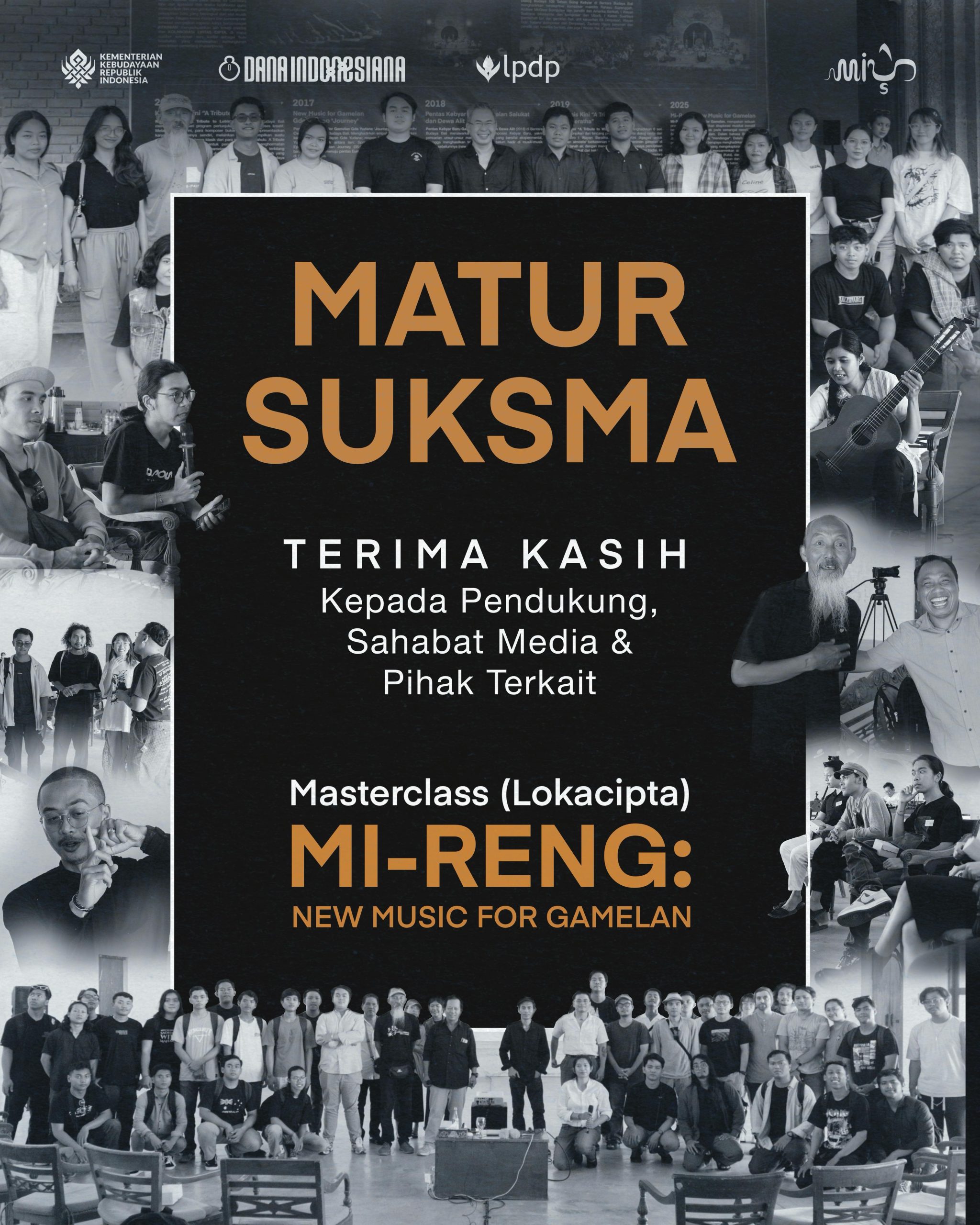 Sarasehan (Loka Wacana) Mi-Reng kali ini merupakan bagian integral dari rangkaian program tersebut, dimaksudkan sebagai wadah literasi dan diskursus mendalam seputar New Music for Gamelan. Berangkat dari pemikiran tentang perlunya ruang dialog reflektif, di mana tradisi dan inovasi bertemu dalam kreasi: bagaimana gamelan, sebagai warisan budaya yang kaya, dapat diolah dengan pendekatan baru tanpa kehilangan yang esensi, dan bagaimana kebaruan rekah tumbuh berdampingan dengan kearifan akar budaya setempat.