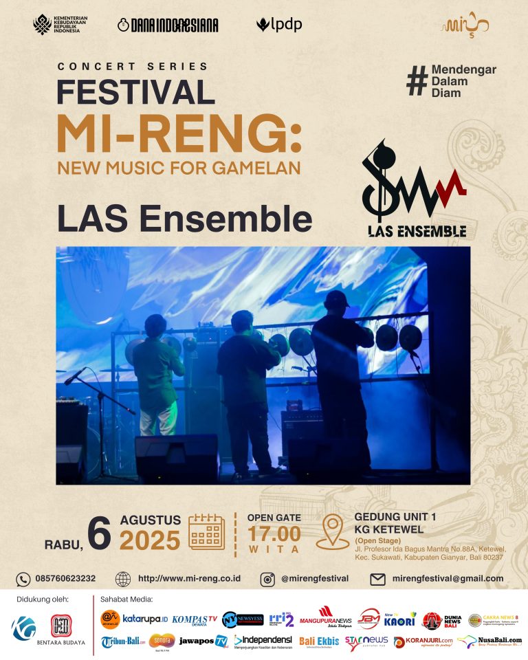 Festival MI-RENG: New Music for Gamelan kembali hadir dengan rangkaian konser yang menampilkan kelompok musik inovatif dari berbagai latar belakang. Pada Rabu, 6 Agustus 2025, giliran LAS Ensemble yang akan tampil di Gedung Unit 1 KG Ketewel, Gianyar, dengan membawa karya-karya kontemporer penuh eksplorasi.